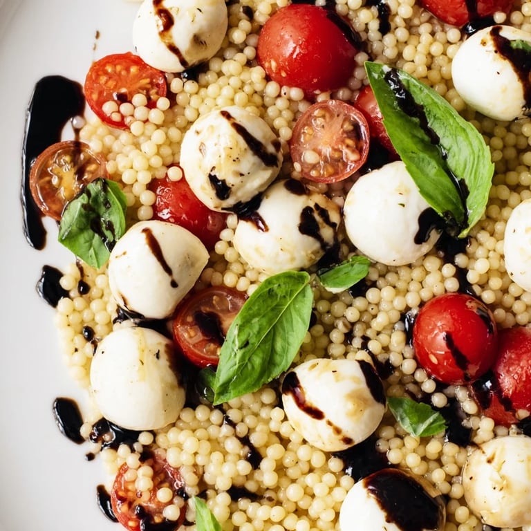 Save The first time I made this salad was for a last-minute lunch with my sister, and I had exactly twenty-five minutes to throw something impressive together. I grabbed whatever was in the fridge and ended up with what has since become my go-to summer dish. Something magical happens when the warm couscous meets those cool tomatoes and creamy mozzarella.