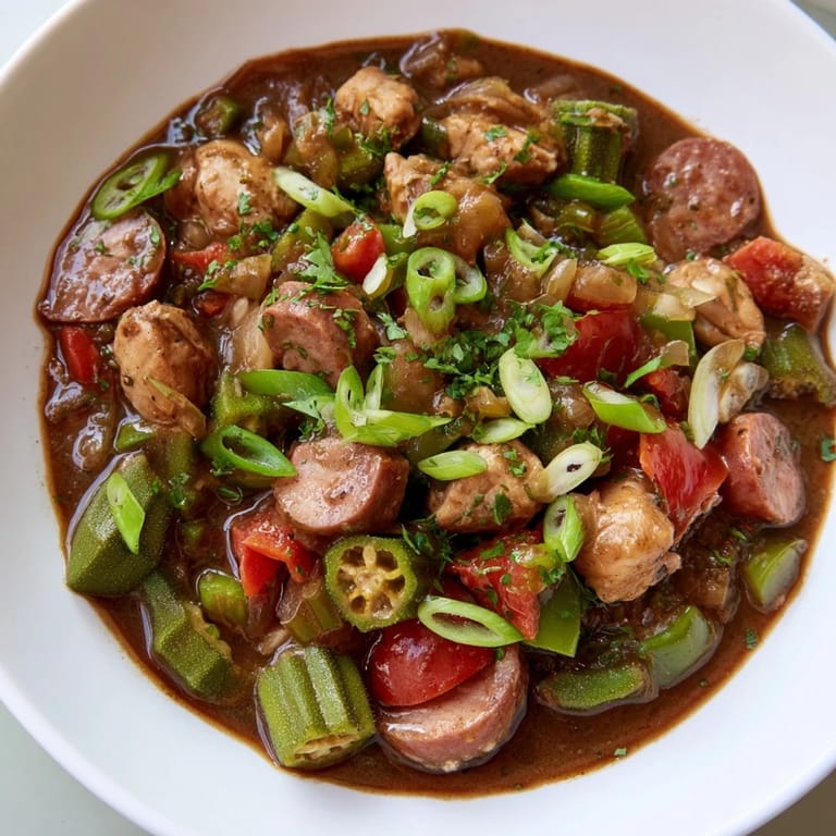 Save The first time I made gumbo, I wasn't trying to be authentic—I was just hungry and had a Dutch oven that had been sitting in the back of my cabinet. What started as following a recipe became an obsession with getting that roux the right shade of brown, watching it transform from pale sandy flour to something that smelled like toasted chestnuts and smoke. My kitchen filled with this rich, almost primal aroma, and I knew I'd found something special. Now, whenever I make it, that smell is the first sign that something good is about to happen.