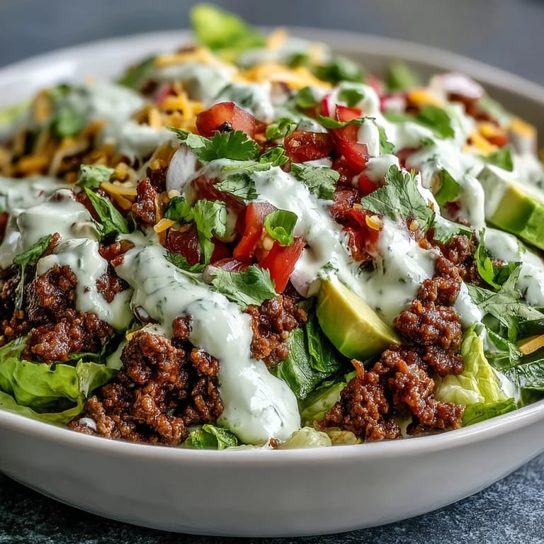 Save Tuesday nights used to mean takeout until I realized how much better a taco bowl tastes when you build it yourself in your own kitchen. There's something about layering fresh ingredients and watching the colors pile up that makes you actually want to eat your vegetables. This healthy version came together one evening when I had ground beef thawing and decided to skip the tortilla wrapper entirely, letting crisp romaine do the heavy lifting instead. The lime yogurt crema was a happy accident, born from leftover Greek yogurt and a lime that needed using before it dried out. Now it's become my go-to answer when someone asks what healthy eating actually looks like.
