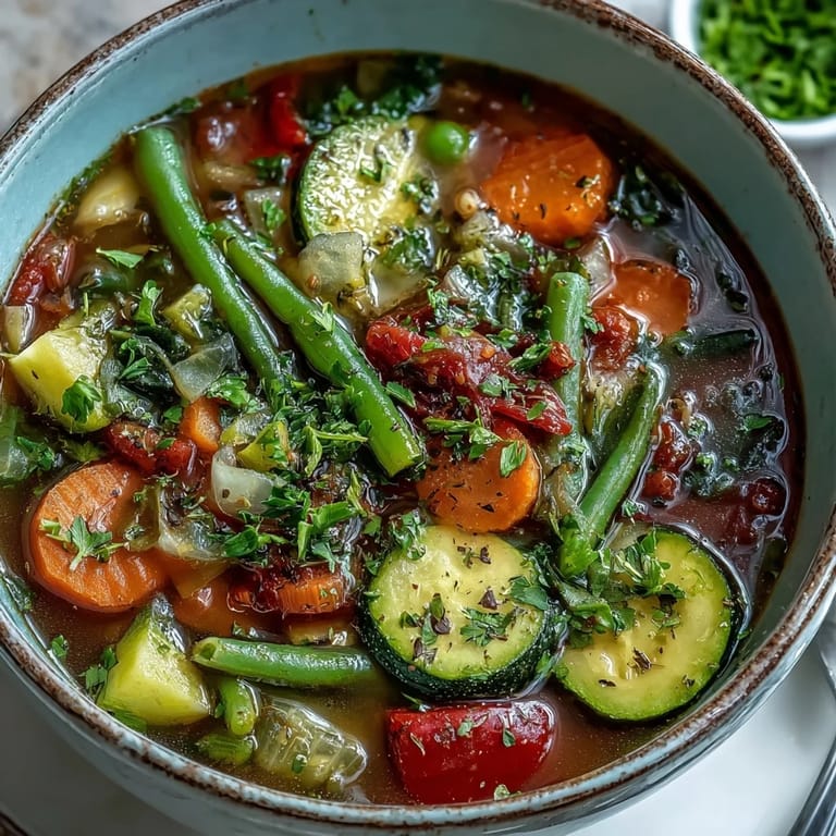 Save The aroma of Italian Herb Vegetable Soup always reminds me of misty autumn evenings spent in my tiny apartment kitchen after graduate school. I first stumbled upon this recipe during a particularly lean month when fresh vegetables were abundant but my budget was tight. Something magical happens when these simple vegetables mingle with dried herbs in a bubbling pot, transforming ordinary ingredients into something that feels like a warm embrace from an Italian grandmother I never had.
