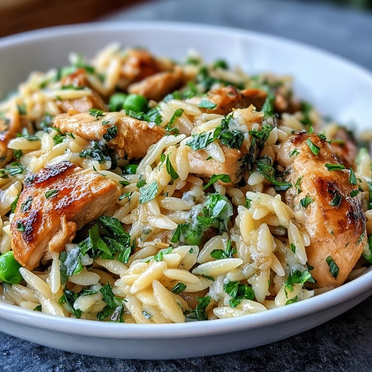 Save The first time I made this one-pot lemon orzo with chicken and peas, I was lured in by the zing of fresh lemon drifting through the kitchen windows while spring rain pattered outside. I remember slicing the onion and the sharp scent mingling with the buttery aroma rising from the stove. It was the kind of evening where the promise of fewer dirty dishes felt like a little miracle. Even my usually skeptical partner admitted it smelled 'like sunshine meets comfort food.' We ended up lingering at the stove just to taste spoonfuls straight from the pot.