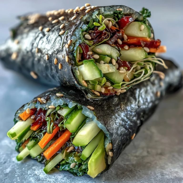 Save Discover the delight of making your own Nori Rolls with Vegetables. These fresh and vibrant DIY seaweed rolls are filled with crisp cucumber, creamy avocado, and crunchy sprouts, making them the perfect choice for a healthy snack or a light, refreshing meal.