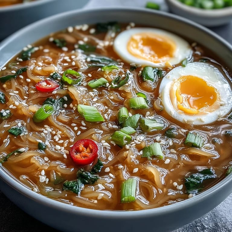 Save My partner brought home a package of shirataki noodles one evening with a skeptical look, unsure if these translucent strands would actually satisfy. We'd been experimenting with low-carb meals, and honestly, I was tired of feeling like I was eating rabbit food. But when I poured that silky bone broth over them—the one we'd been simmering for hours—something clicked. The noodles disappeared into the warmth, soaking up every drop of umami, and suddenly this felt less like a compromise and more like the real thing.