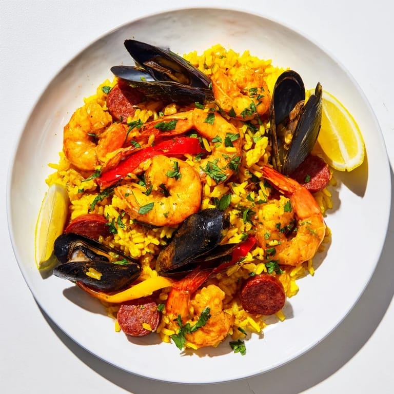 I made this for my sister's engagement party on a chilly October evening, and I'll never forget how everyone gathered around the kitchen when they caught the scent of chorizo and saffron hitting the pan. She stood next to me, sneaking shrimp straight from the dish while it rested, laughing about her own kitchen disasters. That moment—her joy, the warmth of the paella, the way the whole night felt less formal and more like home—is exactly why I keep making this.