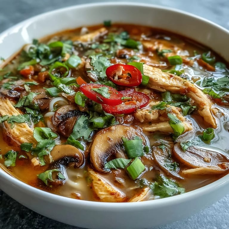 This soup thrives on substitution. Shrimp works beautifully in place of chicken and cooks in about half the time—add them in the last 2–3 minutes so they don't turn rubbery. For vegetarian or vegan versions, swap the chicken for extra mushrooms or cubed tofu, use vegetable broth instead of chicken broth, and replace the fish sauce with soy sauce or tamari. The soup remains absolutely satisfying because the coconut milk and curry paste carry all the richness you need.
