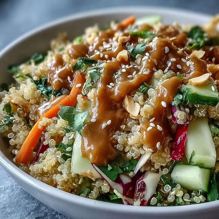 Save A friend surprised me with this bowl at a rooftop dinner during one of those unexpectedly warm spring evenings, and I remember being struck by how the creamy coconut quinoa felt luxurious while the crisp vegetables snapped between my teeth like little wake-up calls. She'd picked up the recipe from a wellness podcast she half-joked about, but the combination was so genuine and uncomplicated that I stopped joking along and just kept eating. The peanut dressing was the moment everything clicked—tangy, nutty, bright—and I realized I'd been making salads wrong my whole life by overthinking them.